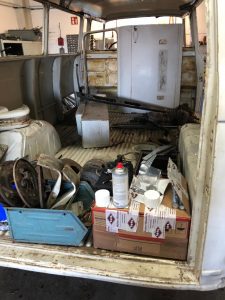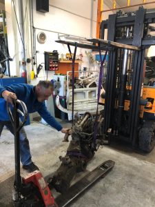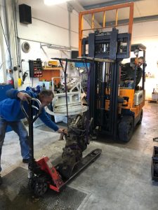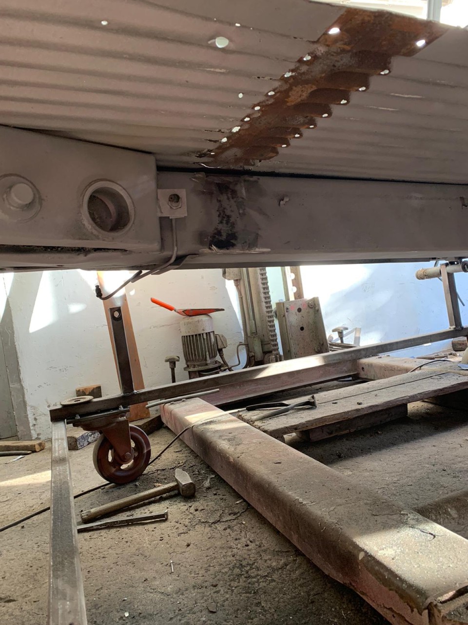 Zerlegen und auf einen fahrbaren Untersatz bringen.